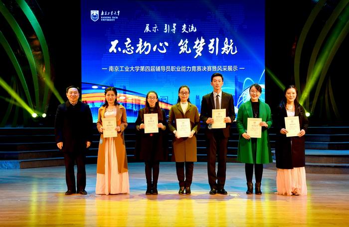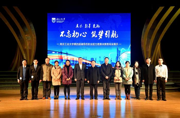12月16日下午,我校第四届辅导员职业能力竞赛决赛暨风采展示在江浦校区大礼堂举行。副校长乔旭,党委常委、副校长蒋军成、崔益虎,党委常委、校长助理、党委组织部部长吴胜红以及兄弟高校学生处领导、学校相关职能部门负责人出席。各学院分管学生工作的书记、副书记、全体辅导员和学生代表观看了比赛。经过激烈的角逐,我院付昌义老师以全场最高分的好成绩荣获特别展示奖;程晓丹老师荣获二等奖。