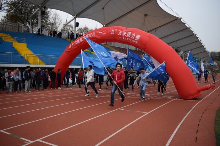 万米晴空,接力青春。12月10日,第十六届“星火杯”纪念“一二·九”万米长跑接力赛在江浦校区田径场隆重举行。此次比赛由校团委、机械学院党委主办,机械学院分团委承办,校体育部、校园安全部、校医院应急救援队协助举办。校园安全部部长朱兴同、校团委副书记朱忠祥、校体育部杭华彬、机械学院党委副书记孙宇莅临现场为长跑接力加油助威。比赛由机械学院分团委书记王敏全程主持。