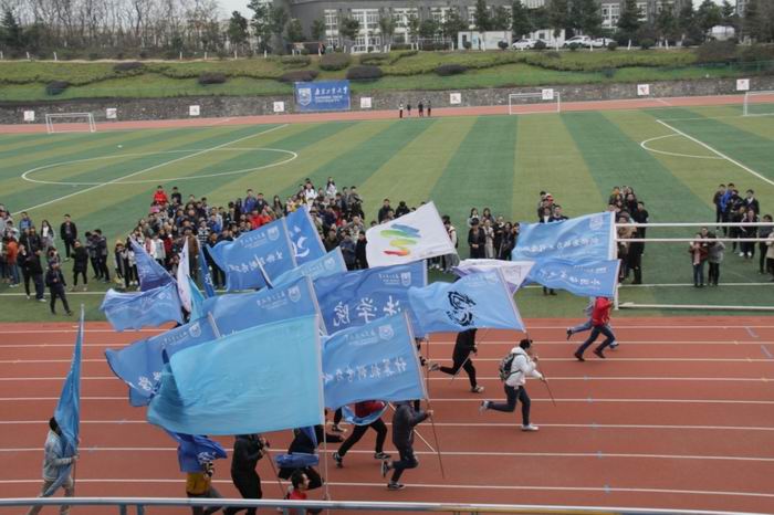 本次比赛全校24个学院均参与其中,传承青年风采,彰显青春活力。冬日寒风阵阵,却挡不住运动员们的热情。开幕式后,朱兴同老师打响发令枪,各院主席高举院旗绕场一圈后,万米接力赛正式开始。此次接力赛共设有22个接力点,接力赛总路程围绕校园两圈。每个站点都有机械学院学生会和校医院应急救援队的工作人员,尽力为每个运动员做好安全和后勤保障。