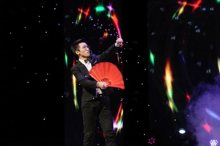 在节奏感十足的鼓点声中,晚会拉开帷幕,飘零山乐队率先带来开场歌曲Come as you are,歌词”来吧来吧,做你想做的”迅速点燃观众热情,现场荧光舞动,摇滚激情的电子乐声相互碰撞,solo鼓手将力度与节奏完美演绎,主唱在低沉与高昂中变换自如,为观众带来一场听觉与视觉的饕餮盛宴。随后由两院大一新生带来舞蹈串烧,既有可爱妩媚,又有动感热辣,展现出女生百变的古灵精怪。一曲《加勒比海盗》恢宏大气,民乐与西洋乐器结合的演奏形式让旋律更添几分灵气,将自由诠释得淋漓尽致。来自机械学院的研究生施佳辉将生活中的回忆融进魔术中的点点滴滴,最后将一张纸化为漫天雪花的奇迹在他指尖发生,赢得现场观众的欢呼喝彩。