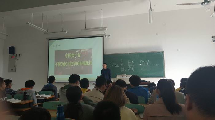 接下来,老师对抗日战争中涌现的英勇共产党员的事迹做了介绍。其中对于杨靖宇,赵一曼,八女投江等事迹做了详细介绍,看着屏幕上一张张老旧的照片,有人最后不禁发出了“壮哉,悲哉”的感叹。在介绍赵一曼烈士时,老师放出了当时她在前往刑场的车中写下的最后的家书。“一封家书背后隐藏着多少的愧疚和无奈,身为人父的我目前才理解,而赵一曼烈士仍坚定的踏上了为革命事业而牺牲的道路,这才是一名伟大的中国共产党员所拥有的精神。”情到深处老师不禁发出这般感叹。
