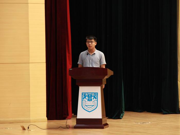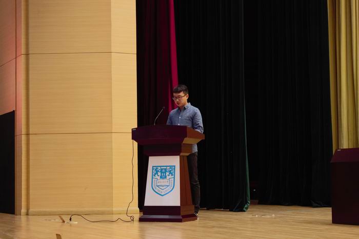 随后,四名学生代表发言。2016级博士张威作为研究生老生代表发言。路漫漫其修远兮,在求学路上他以自身经历修得许多宝贵经验,勉励新生们“明确目标,保持初心”。江苏省大学生年度人物提名奖获得者控制1401班陈野风同学作为本科生老生代表发言,他向新生们提出三项倡议:一要开阔眼界,虚心求教,拒绝坐井观天;二要正视差距,奋力追赶;三要自信为足、拼搏为腿。接着,2016级研究生新生代表王子文发言:他认为脚踏实地、加强交流、勇于探索是所有新生们的必备素质。最后,焊接1601班郑沥颖作为本科生新生代表围绕南工校训“明德厚学,沉毅笃行”展开,他提出“博学不穷,笃行不倦,厚学竞成,晨钟暮鼓”“厚德济世,沉毅生根”“功崇惟志,业广惟勤”,作为机械学院的一名学子,要致力于用所学知识实现更多中国创造,为国家创新之路做出自己的贡献。洪亮的声音与激昂的情绪感染了全体新生,赢得了多次掌声。