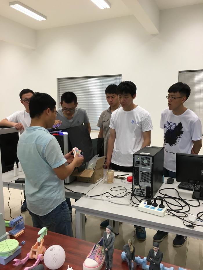 3D打印作为近些年来越来越被推崇的技术之一,受到了同学们的很大关注。这是一种以数字模型文件为基础,运用粉末状金属或塑料等可粘合材料,通过逐层打印的方式来构造物体的技术,如今已在医学、航天科技、工业设计、房屋建筑等诸多领域内运用。通过几天的听取讲解到手动操作,同学们对打印原理技术和打印过程有了更深一层的了解。拿着自己构建模型后打印出来的成品,同学们甚是欢喜。