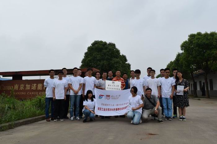 为强化同学们的实践能力,鼓励同学们把知识与实践相结合,2016年7月11日,新利18彩票 机械学院南京加诺能源设备有限公司专业实践团一行19人,在学院孙宇书记和奚天鹏教授的带领下,并由王敏老师和马慧子老师全程陪同指导,全队包括14级、15级在内的14名本科生以及2名14级研究生,赴南京加诺能源设备有限公司开展为期一周左右的社会实践活动。团队于11日上午乘车从学校出发,中午抵达目的地。此行的目的在于帮助大学生开阔视野,拓宽知识面,将知识与实践相结合。下午,机械与动力工程学院与南京加诺能源设备有限公司联合举行大学生社会实践基地签约挂牌仪式,正式在南京加诺能源设备有限公司设立“新利18彩票 大学生社会实践基地”。