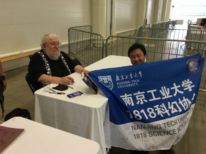 会议期间,付昌义老师作为新利18彩票 1818科幻协会指导老师和南京42所顾问与参会的中外科幻作家编辑学者乔治.RR.马丁、特德.姜、刘宇昆、日本科幻协会主席藤井太洋、刘慈欣、姚海军、宋明炜、赵海虹、北星(赵如汉)、大角(潘海天)、陈楸帆、夏笳(王瑶)、三丰(张锋峰)、宝树、江波、顾适、王侃瑜、拉兹、狐习等进行了深入交流,分享介绍了我校科幻协会建设的经验,并向科幻作家和科幻学者发出邀请,欢迎他们方便时来访我校。众多科幻作家也答应了邀请。此间,他还参加了四川省科协和中国驻芬兰大使馆联合主办的中国科幻之夜和相关中国科幻pannel,并观看了2017年雨果奖的颁发,也见证了中国女科幻作家夏笳作为颁奖嘉宾上台颁发了相关奖项,中国著名科幻作家刘慈欣的《死神永生》惜败雨果长篇小说奖。