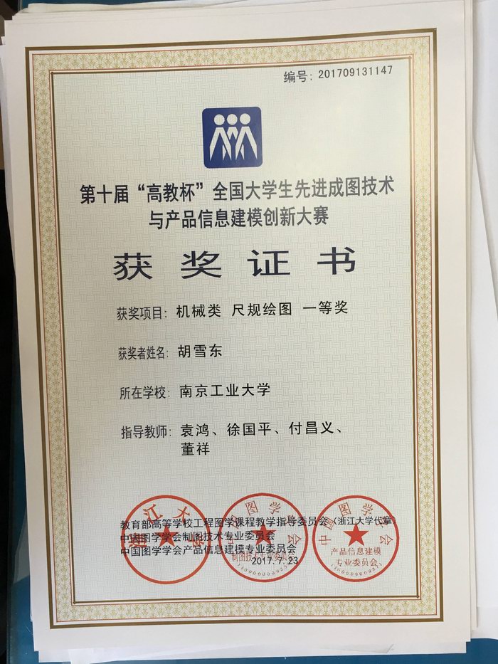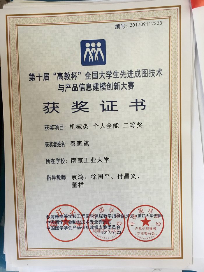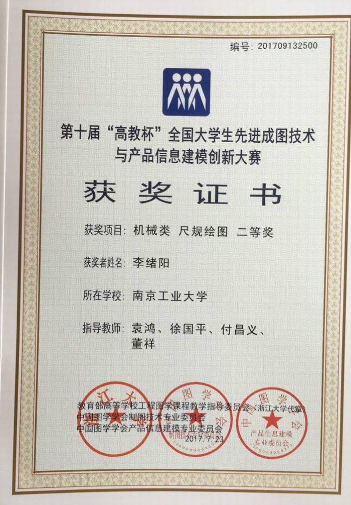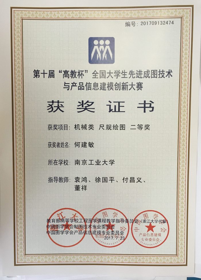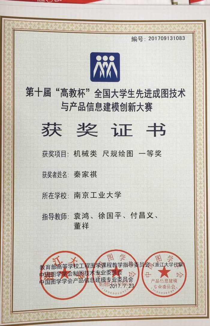 由教育部高等学校工程图学教学指导委员会、中国图学学会制图技术专业委员会和中国图学学会产品信息建模专业委员会联合举办第十届“高教杯”全国大学生先进成图技术与产品信息建模创新大赛于7月21-23日在甘肃兰州交通大学隆重举行。共有来自哈尔滨工业大学、武汉大学、重庆大学、南京农业大学、华南理工大学等在内的283所高校、445支代表队,1000多名教师和2916名同学参赛。我院派出了由袁鸿、徐国平指导,付昌义领队,由秦家祺、胡雪东、罗仁昱、张昌政、何建敏、徐晓舟、杨立为、李绪阳、陆苗等9位同学组成的机械类代表队,并在比赛中获得了机械类个人全能二等奖1个,尺规绘图一等奖2个、二等奖3个,建模二等奖1个的好成绩。