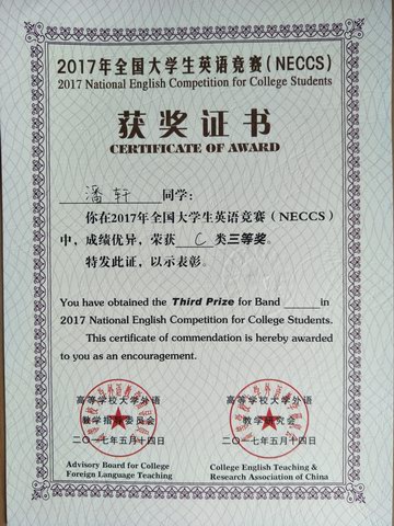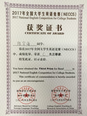 近日,从教务处获悉,在2017年全国大学生英语竞赛中,我院焊接1501尹子轩荣获二等奖,新能1402潘轩、车辆1602陆宇海荣获三等奖。