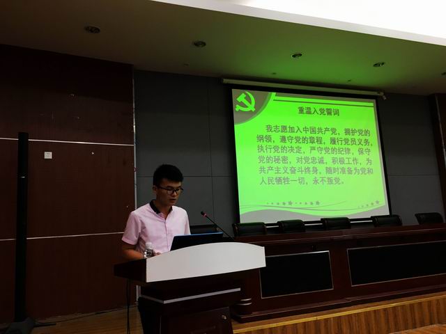 活动伊始,全体起立齐唱国际歌,随后在孙宇老师带领下面向党旗重温入党誓词。毕业生党员代表鲁少林同学向大家发表文明离校倡议,号召大家要成为一名文明、勤俭、爱岗敬业的党员。付昌义老师结合两学一做学习目标,希望大家能成为一名有责任心,勇于担当的合格党员。接着,戴宏书记结合深化“两学一做”学习教育的总体要求,强调毕业班党员要牢记使命,心有大爱,将个人事业发展和祖国与人民的需求相结合,永远保持奋发进取的激情,为母校争光,为党旗添彩!