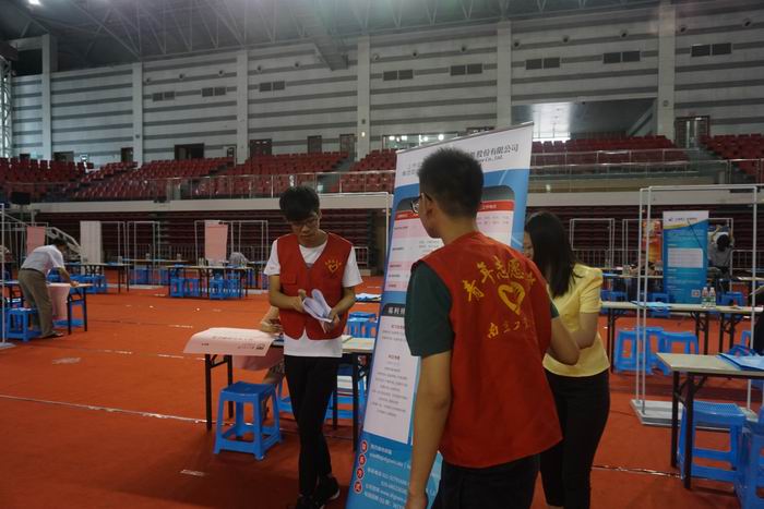 本次活动志愿者的主要工作为维护现场秩序、引导招聘企业及求职者至指定展位、为企业及求职者提供咨询服务、提供矿泉水、撤展等工作。在活动开始之前,志愿者们就已提前到场并准备就绪,大家都以饱满的热情准备迎接每一家企业和每一位求职实习生。招聘会正式开始,大家并没有因为工作分配的问题而产生情绪,不管是维护场外秩序还是引导参会人员,每一位志愿者都在做好分配给自己的任务的同时,随时准备着为有需要的企业或实习生提供帮助。