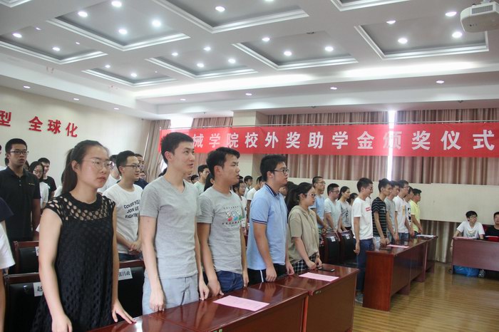 最后,全体嘉宾、老师及同学起立奏唱新利18彩票 校歌,机械学院校外奖助学金颁奖仪式圆满结束。希望机械学子努力争先,为机械学院再创辉煌。