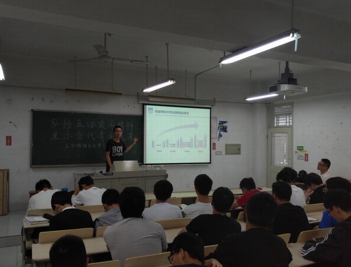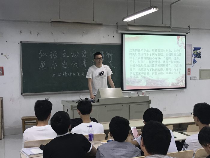 首先,车辆1702班团支书何翰璋同学以PPT的形式讲解了五四运动的历史,五四精神的内涵,并指出当今大学生缺少积极向上、努力拼搏的斗志。之后,同学们观看五四运动的相关短片。通过短片,同学们看到了当年青年学生是如何为国家、为社会奉献自己的青春激情的。大家纷纷上台交流观后感并给自己定下了目标。