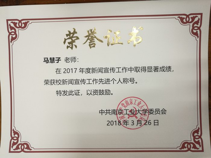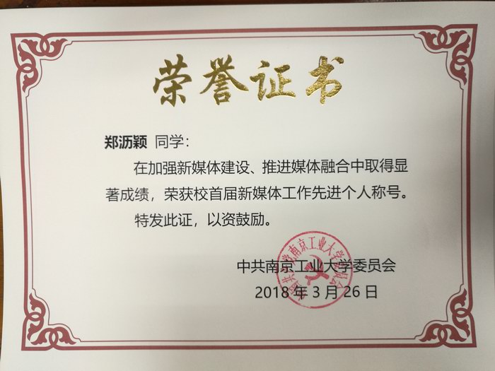 在此次表彰中,我院荣获新闻宣传工作“先进集体”称号,马慧子老师荣获新闻宣传工作“先进个人”称号,焊接1601班郑沥颖同学获得首届新媒体工作“先进个人”称号。