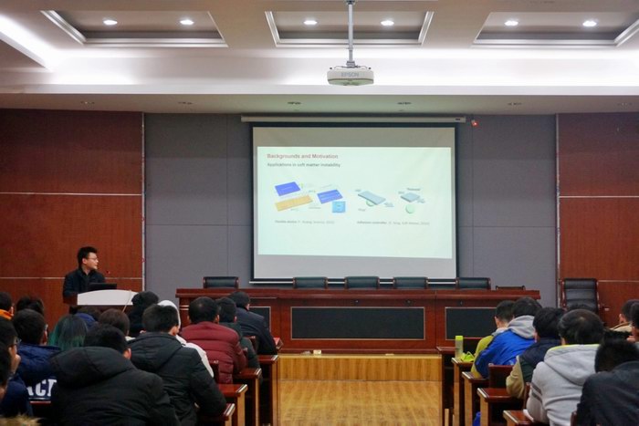 12月27日下午,机械学院邀请优秀校友金涵逊在学院报告厅作关于“力学结构失稳在柔性材料中的应用:远压力场下生物管道的褶皱力学”的报告,论坛由院党委副书记付昌义老师主持,能源学院副院长周剑秋教授和学生代表参加了此次论坛。