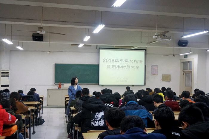 12月15号下午,机械学院16级辅导员马慧子老师在仁智楼318教室给全年级学生召开了年底总结会暨期末考试动员大会。由于年级学生较多,本次会议共分两场 。