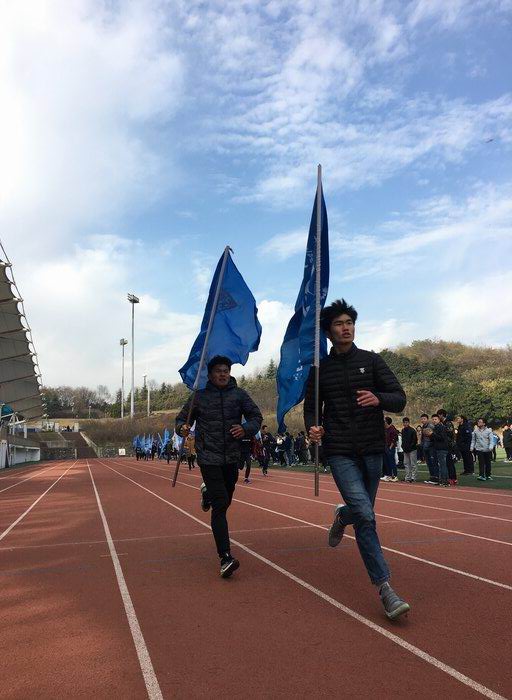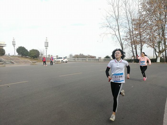 随后,校园安全部综合治理科科长徐东老师打响发令枪。全校24个学院主席高举院旗绕场一周后,万米接力赛正式开始。寒风瑟瑟,依然吹不散同学们的热情。在每一名选手的努力拼搏下,不到半小时,比赛便已接近尾声。体育部群体竞赛中心主任赵飞老师、杭华彬老师宣布比赛成绩,海外教育学院以21分05秒的好成绩摘得桂冠,土木学院、化工学院分列二三名。