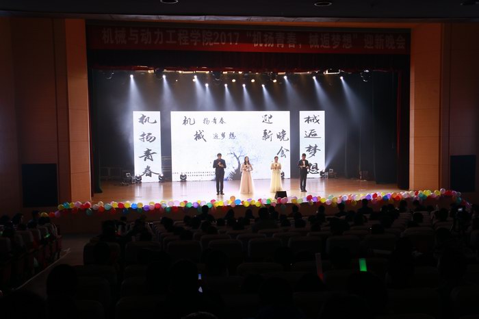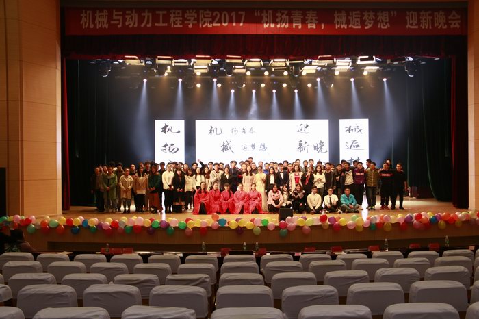 11月26日晚,机械与动力工程学院2017“机扬青春,械逅梦想”迎新晚会在江浦大礼堂举办,副院长周剑锋老师、王华老师,党委副书记付昌义老师以及全体辅导员老师和同学们一起观看了晚会。
