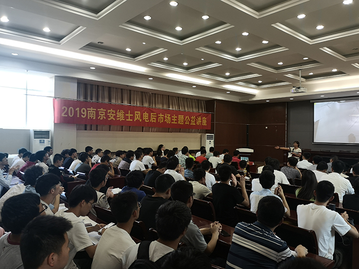 讲座开始前傅旸经理致辞,他首先感谢机械学院为公司提供与同学面对面交流的平台,希望通过此次讲座激发学生们对风电行业的兴趣,进一步完善公司与高校的合作机制,推动产学研合作基地建设,为更多优秀的毕业生提供实习和工作的机会。随后,吴明明讲师从风力发电行业概况、风电后市场概况、南京安维士介绍、大数据时代运维革命四个方面向同学们讲解了风电市场的发展现状和未来趋势,并配合着现场模型演示,形象直观的向同学们展示了风电系统运作原理。讲座结束后,吴明明讲师还热情解答现场同学们提出的各项问题,使大家获益匪浅。