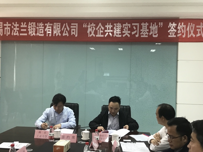 会议伊始,章其强董事长首先对大家的到来表示感谢,希望借此校企合作的机会,加深与各高校之间的了解,寻求进一步的合作交流。李刚亮总经理介绍了公司的基本情况和发展思路,展示了公司在人才培养、项目合作、创新创造等方面取得的成绩。随后,新利18彩票 机械学院党委副书记付昌义与无锡市法兰锻造有限公司法人代表李刚亮总经理共同签署了新利18彩票 “大学生社会实践基地”和“就业创业实习实践基地”的协议书。签约仪式结束后,付昌义老师表示,希望以建立实习基地为契机,加强人才和产学研交流合作,为今后更深一步合作打下基础。