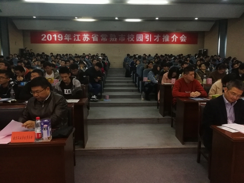 3月18日下午,2019年江苏省常熟市校园引才推介会在我校江浦校区图书馆一楼报告厅成功举办,常熟市公务员管理局副局长、市人才办副主任吴夏阳,常熟市人力资源管理服务中心主任霍新,校学生事务部副部长张涛;电控、法学、化工、机械、计算机、经管等学院副书记和部分辅导员以及300多名同学参加了推介会,活动由机械学院党委副书记付昌义主持。