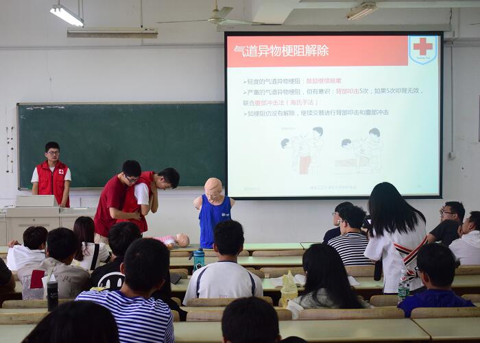 5月12日,校红十字会在同和楼513室为材料学院和2018年南工伯黎暑期支教团开展应急救护普及性培训。培训对象共计50余人,本次培训由校红十字会教研部组织负责。