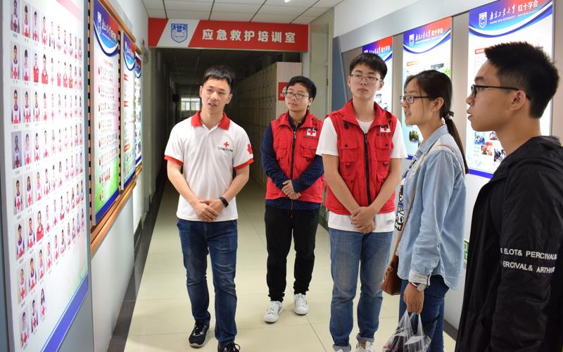 中国药科大学红十字会的同学来到应急救护培训基地后,基地管理服务队的同学带领他们参观红十字应急救护培训基地并解答了他们提出的问题。双方就基地的建设和管理、红十字会的招新和发展等问题进行了深入的探讨交流。