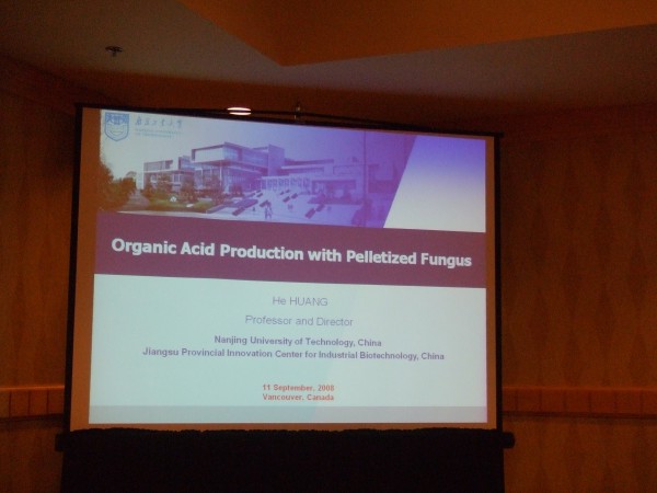 应国际著名的BIO组织(Biotechnology Industry Organization,国际生物技术产业组织)和BIOTECanada(Canada’s Voice for Biotechnology,加拿大生物技术协会)邀请,我院黄和教授出席了2008年9月10日-12日在加拿大温哥华召开的环太平洋地区工业生物技术及生物能源峰会(Pacific Rim 2008),并受大会组委会安排作了两场大会特邀报告,报告题目分别为:《Biocatalysis and Biotransformation in China: Current Status and Perspectives》和《Organic Acid Production with Pelletized Fungus》。
