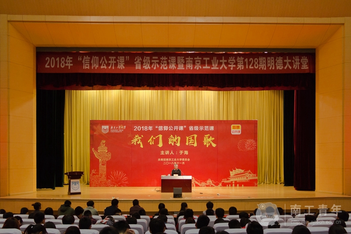 11月8日晚,中国音协管乐学会主席、中国音乐家协会理事、国家一级指挥、中国人民解放军军乐团音乐总监于海做客我校第128期明德大讲堂。副校长吴胜红、江苏管乐学会会长陈建华、前线歌舞团常任指挥常畅、省教育厅体卫艺处及校团委负责人,与近千名同学共同参加了本次讲座。此次讲座成功入选团省委2018年“信仰公开课”省级示范课。