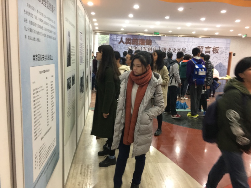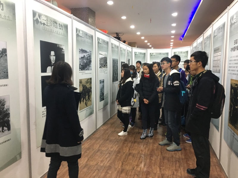 为了让同学们铭记历史,强化民族观念,激发爱国热情,在第三个国家公祭日来临之际,药学院团委组织2016级新生代表,怀着沉痛的心情来到我校江浦校区大学生活动中心参观了马克思主义学院联合教学事务部、校团委在活动中心举办南京大屠杀史实展。