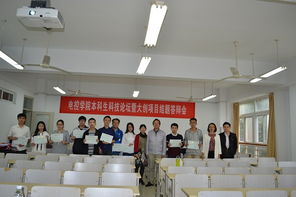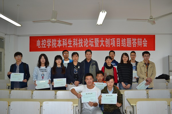 此次竞赛分为现场PPT展示和答辩两个部分。展示阶段,参赛团队向现场专家评委和观众详细介绍了作品的设计理念、实验方法和创新特色;答辩阶段,面对评委老师的询问,选手们多能从容应答,通过胸有成竹的阐述,充分展现了自己的独立创新能力,获得了评委的认可。同时评委老师也为各个作品提出了宝贵的改进意见,同时和同学们交流了一些创新方面的心得。评委老师认真评议,逐一提问及点评。最后,经过评委老师的认真讨论,最终汪欣眉同学所在团队的作品《轴向-径向磁通双凸极永磁电机研究》、郭川同学所在团队的作品《智能巡视小车》等4篇作品荣获本届科技论坛暨大创项目一等奖,刘冀宁同学所在团队的《大气压等离子体射》等8篇作品获二等奖,黄晨同学所在团队的《基于ZigBee技术下的智能照明系统》等8篇作品获三等奖。