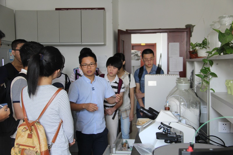 座谈会之后,来访同学们在生工学院学生骨干的带领下参观了姜岷教授实验室。实验室马江锋博士后为同学们讲解了酶工程研究未来发展前景以及课题组近期成果,并为同学们演示了冷冻真空干燥机、超净工作台的使用方法和作用。武汉大学实践团队成员对生工学院的科研和学习环境十分向往。