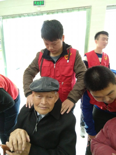 志愿者们在会长孙竞同学的安排下分成若干小组,分别到敬老院的各楼层慰问老人。敬老院与学校的校园环境不同,少了一分青春活力的喧嚣,多了一分宁静祥和,志愿者们真诚地与老人们交流后发现,老人们十分渴望与亲人相聚在一起,他们的内心孤独寂寞。物质关照并不能真正地帮助他们,他们需要的仅仅是一份关心或者一句问候。
