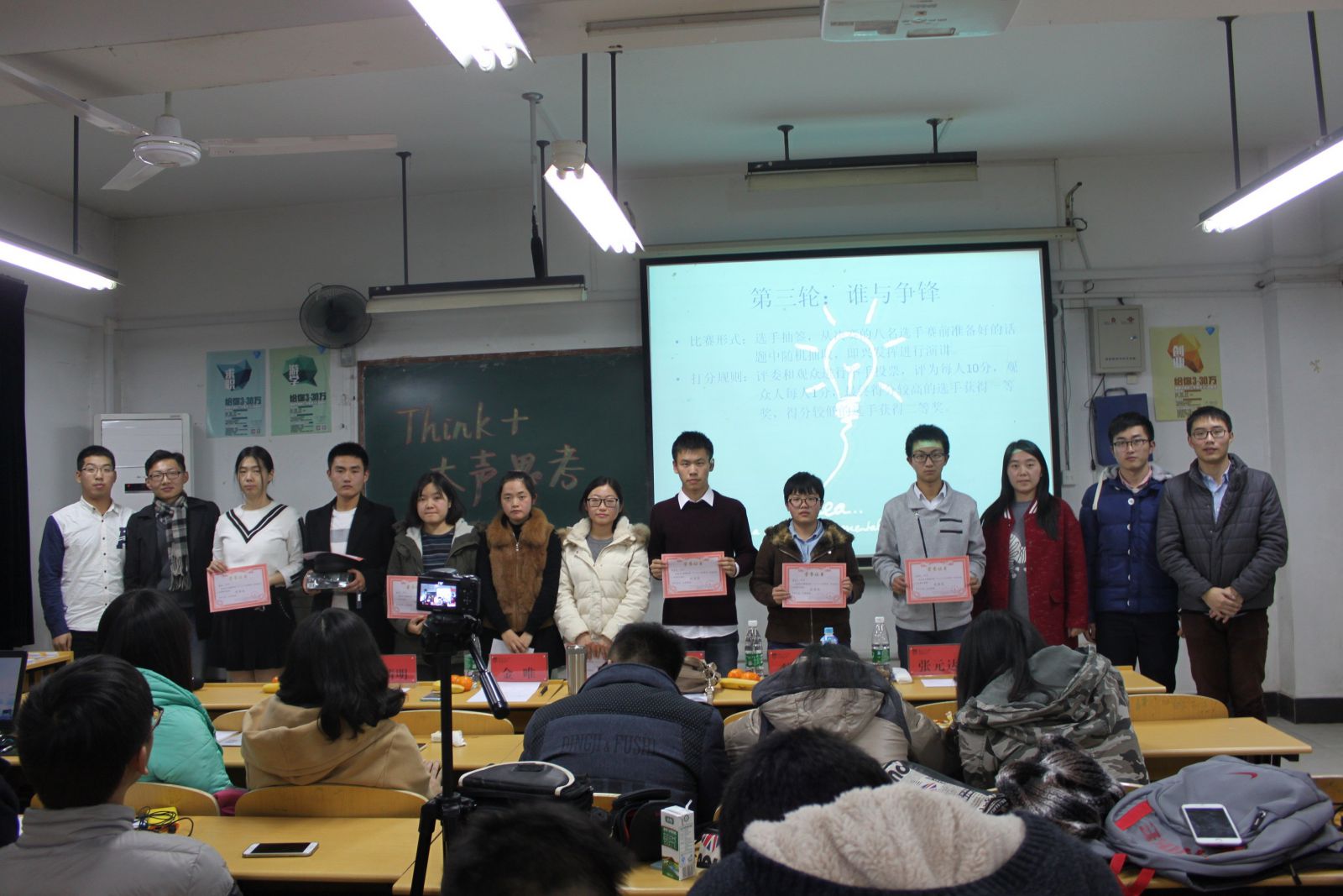 把思想搬上舞台,让每一个思考者都有广阔的发声平台,让每一种不同的思维正面交锋,这就是think+的意义。2015年12月11日晚六点,由经济与管理学院学生联合会主办的第三届“think+大声思考”自由论坛决赛于厚学楼206教室成功举办。担任此次比赛的评委有经济与管理学院辅导员罗圣辰老师、经济与管理学院学生联合会主席金唯、2011学院学生会主席李国庆、交通运输工程学院学生会主席王清明和艺术设计学院学生会主席张元达。