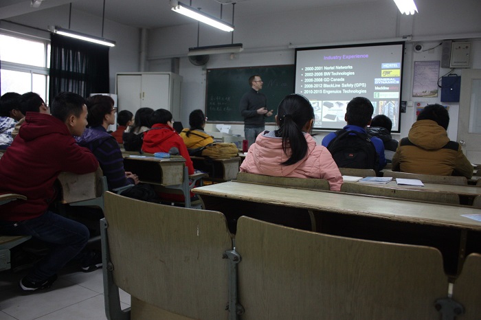 讲座围绕电子信息工程、通信工程专业的相关知识展开。在讲座之前,Jason Long先向同学们展示了一些Engenuics公司的电子产品,并作了相关说明,向大家演示了其功能,并由此引入,向同学们介绍了Engenuics公司对于嵌入式系统的设计的人才培训,对于硬件和固件的学习向同学们提出了建议。他指出,大学生应该多动手,多实践,这样才能对其内部结构有更深入的认识,才能设计出更好的产品。此外,他还对目前西方以及中国在该方面的发展情况进行了对比分析,让大家更深刻地了解了当今电子硬件在全世界的发展趋势。同学们被Jason Long幽默的风格和详细的讲解深深地吸引着,也学也到了很多课堂上没有的知识。