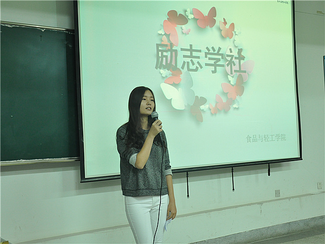 励志学社社长秦琲琛首先指出励志学社的性质,以及励志学社所有的活动都围绕“公益”这个主题。接着,她向大家讲述了励志学社的发展历史。虽然励志学社成立时间不长,但已举办过多场大型活动。随后,各位骨干的发言则都围绕这些活动展开。