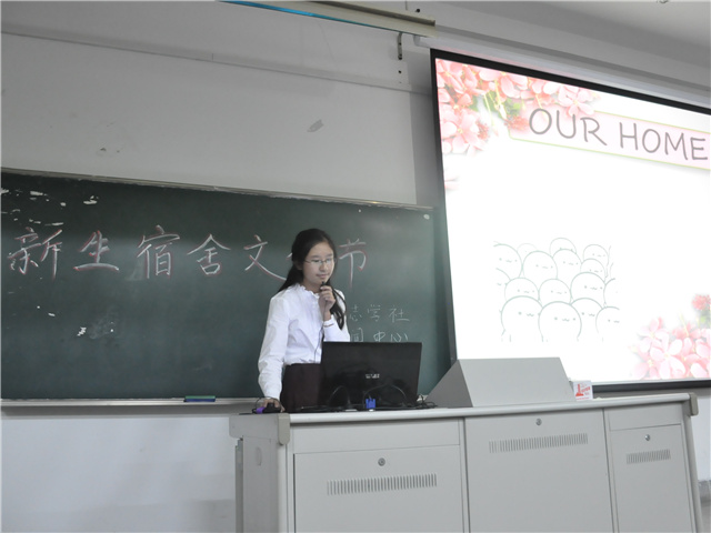 “幸福是什么?”活动开始后,上台展示的第一组就向所有人描述了他们的幸福:“幸福是窗外吹着北风,我们在宿舍里吃康师傅。”从家里的鸡蛋面到宿舍里的方便面,他们感受到宿舍带给他们独特的温暖。随后,各个小组依次用视频或PPT展示各自的宿舍环境以及成员情况。从精美的窗帘到简约的吊椅,从清新淡雅的盆栽到五彩缤纷的灯饰,还有新生们自己张贴的海报,亲手挂上的装饰品,一起制作的照片墙,精心设计的卡通形象和宿舍标志。每一处装饰都体现出新生们为宿舍文化节付出的努力。
