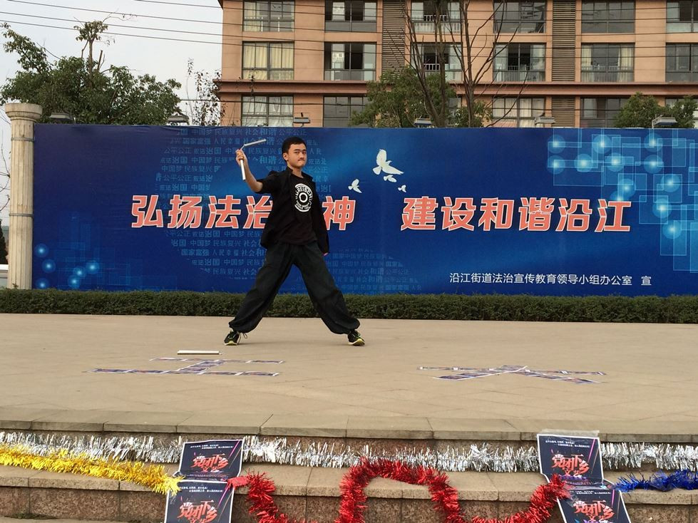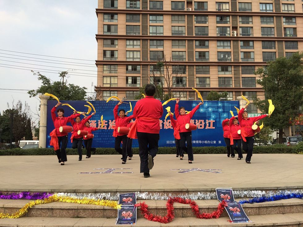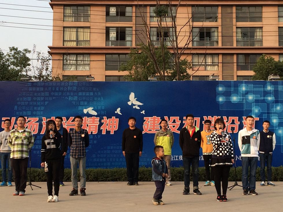 下午2:30,本次的广场文艺演出在《我和我的祖国》的歌声中拉开了帷幕,整场演出精彩不断、高潮迭起。双截棍武术表演《醉擎虹》中演员惊险刺激的动作大气磅礴,让观众大饱眼福;歌曲《怎么说我不爱你》温婉回环,女生独唱《走在冷风中》、《被遗忘的时光》旋律动听,悦人双耳;劲爆的街舞表演,展现了南工学子的活力与朝气;手语表演《南山南》灵动唯美,赏心悦目;小提琴长笛二重奏《爱的礼赞》琴声悦耳,笛声悠扬,让人如痴如醉。节目之间穿插的互动小游戏“踢毽子比赛”,“拍七令”,“反方向”得到了居民的广泛参与,舞台上下不时响起欢笑声和掌声。同时,路西社区的阿姨们也带来了精彩的腰鼓和广场舞表演,阿姨们舞姿轻盈,步伐整齐,一展夕阳红的美丽。活动最终在团总支大合唱《相亲相爱》的乐声里圆满结束,大家合影留念,相约来年再聚。