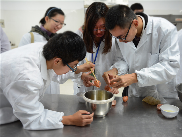 下午的蛋挞制作显得更加有趣。与蛋糕制作不同,蛋挞制作需要将材料倒入事先准备好的蛋挞皮中,参赛选手小心地确保了每一个制作环节后,放入烤箱时需要控制好合适的温度。一段时间的等待后,弥漫着香气的蛋挞新鲜出炉。本次“舌尖上的实验室”在参赛选手的欢声笑语中圆满结束,他们用一天的忙碌换来了自己亲手制作的蛋挞、蛋糕,体会到了食品科学的魅力。