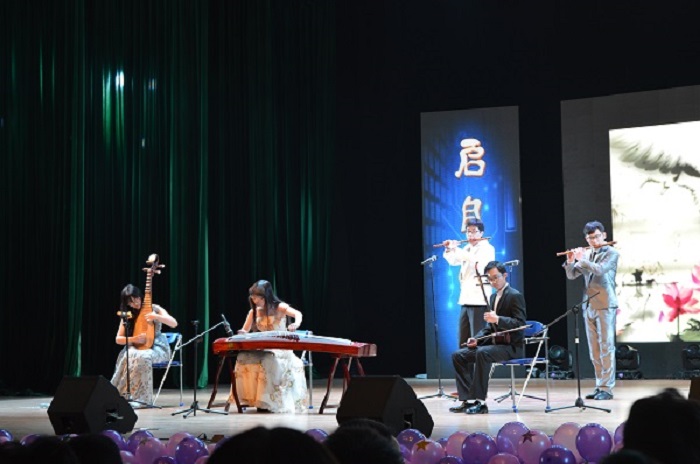 随后,潮爆公社的嗨歌劲舞、宅舞联盟的卡哇伊舞蹈、下加一线的深情歌唱点燃了全场的激情。由我院学生与校民乐团合奏的民乐《清明雨上》给大家带来耳目一新的感觉,院研究生同学们热情奔放的街舞《热火青春》充满了动感和活力,学生会成员带来的默剧《新摩登时代》、话剧《我的梦想我的路》让人忍俊不禁,电气1502班自编错觉舞蹈《幻影重重》以巧妙的创意让人连连叫好,把全场的气氛推向高潮,充分展现了电控学子多才多艺、自信昂扬的风采。