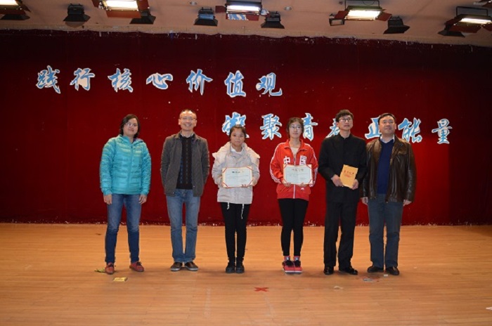 经过评委评分,最终,电智1501的影子剧《征程》以切合主题的表演内容和颇具创意的表现手法获得本届团支部风采大赛一等奖,电气1501等3个支部获二等奖,电气1502等5个支部获三等奖,与会领导上台为获奖支部颁奖并合影留念。