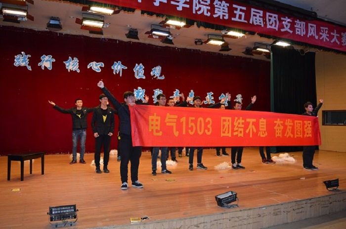 本届团支部风采大赛共分为“硝烟中的爱国”和“让青春为核心价值观代言”两个篇章,各班紧密围绕主题,精心编排了不同形式的节目。测控1501的朗诵《我爱你,中国》,道出了新时代的莘莘学子对祖国的款款深情;电气1502的话剧《平凡的力量》讲述了平凡百姓为保护八路军所尽的绵薄之力;电智1501的影子剧《征程》形式新颖,生动表现了中国共产党在实现全民族解放伟大征程上的艰辛付出;电气1501的话剧《抗战英雄》选取了八年抗战中的几个瞬间,情节感人,催人泪下;测控1502的话剧《经年留影》通过回顾往昔的校园生活,让同学懂得了友善的可贵;自动化1501的《一杯子的青春》将经典歌曲与独特的表演方式相结合,表现了友善带来超越困难的力量,友善带来推开冷漠和自闭的动力;电气1503的默剧《愉快的合唱》表现了友善产生的强大的向心力和凝聚力;电智1502的话剧《与诚信同行》阐释了诚信作为大学生的重要品质,时刻都应该放在最重要的位置;自动化1502的合唱《红旗飘飘》在飘扬的五星红旗中,唱出了对祖国和人民的一片深情。