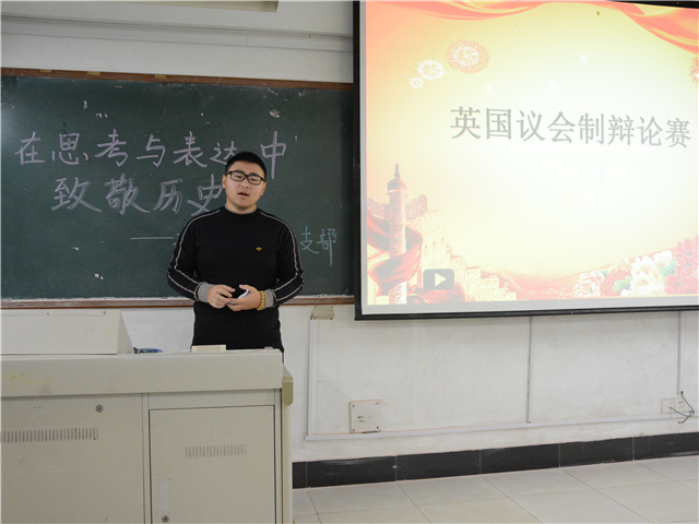 11月21日上午9:00,食品学院本科生第三党支部党日活动在厚学205室举行,本次活动的主题是在思考与表达中致敬历史,以英国议会制度形式呈现了一场精彩的辩论赛。出席本次活动的主裁为本科生第二党支部副书记、前英语辩论协会会长吴晨晨,边裁为彭玲和张皓,嘉宾有新闻中心总编侯甲第及第三党支部成员。