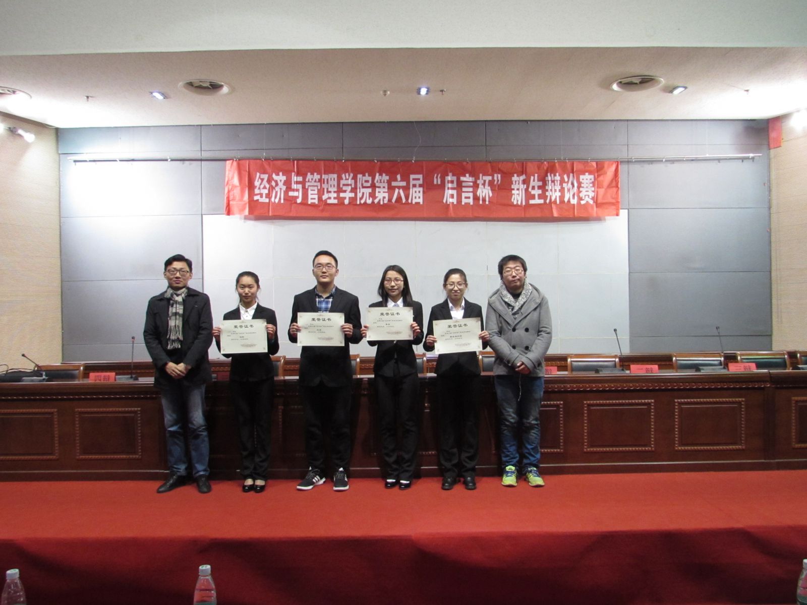 2015年11月29日下午13:30,由经济与管理学院学生联合会和经济与管理学院辩论队联合主办的第六届“启言杯”新生辩论赛决赛于图书馆报告厅正式举行。