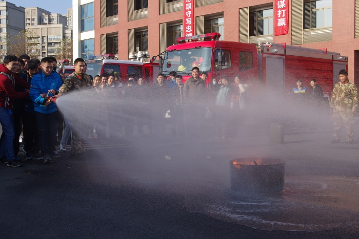 刚进入消防大队同学们就被威严的消防部队建设所震撼,跟随消防官兵开始了参观活动。首先,消防官兵演示说明了火灾发生的起因以及正确逃生方法,介绍了消防灭火器的结构和正确使用方法,并且详细地向同学们介绍了消防车辆和一些消防装备,如急救箱、氧气瓶、防毒面具、高压水枪等。随后,同学们现场体验用高压水枪扑灭火灾的过程,看着那熊熊燃烧的烈火被自己扑灭,自豪感油然而生。并且部分同学乘坐云梯,亲身体验消防员在高空救援时的状态,36米的高度锻炼的是胆量和毅力。接着,同学们参观了消防官兵的学习室、娱乐室和休息室,优美清新的环境,摆放书籍,配备电脑,设有音乐台,丰富了工作之余的休闲生活,陶冶情操。走进宿舍,看到那些有棱有角的被褥和摆放整齐的各类物品,同学们都忍不住惊叹起来,由衷地表达了他们对消防官兵的敬意。最后全体学生与消防官兵在消防大队门口集体合影,留下了美好的回忆,此次活动完美谢幕。