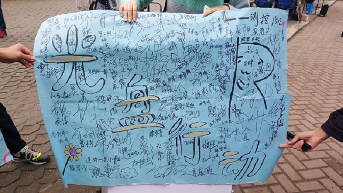 活动伊始,同学们有序分配好了任务,带着自制的材料布置好场地,自行分组前往各大食堂进行活动。活动期间,测控1502班的同学们向食堂门口的同学们发放了光盘行动的倡议书,普及宣传光盘行动的相关知识及必要性,让同学们了解光盘行动的必要性,并号召同学们在宣言展板上认真地签下自己的名字,以示加入光盘行动的决心。很快,在测控1502班同学的宣传下,同学们纷纷前来签名。