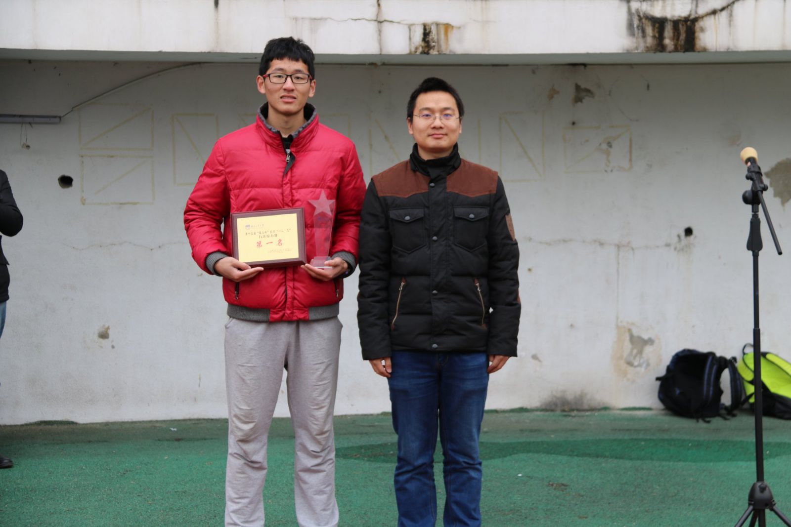 最后,由朱忠祥老师、杭华彬老师和孙宇老师为此次比赛的前八名颁发荣誉证书并合影留念。至此,第十五届“星火杯”纪念“一二·九”万米接力赛圆满结束!