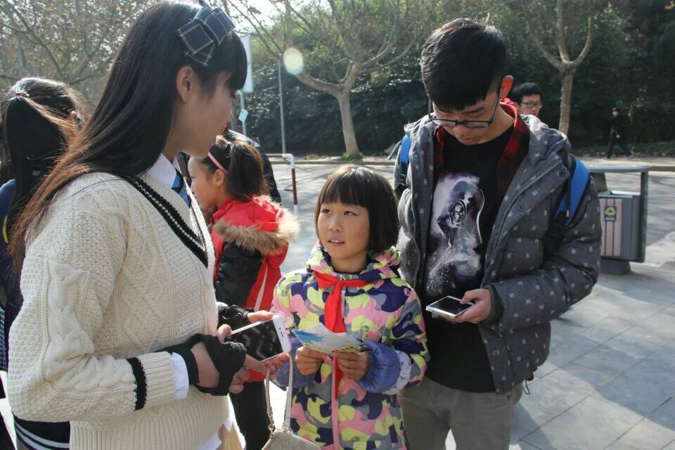 上午10时许,伴着冬日清晨的阳光,全体工作人员和志愿者们在厚学楼正门前迎来了柳袱小学的师生。小朋友们按照预先准备的编号与负责带领他们的志愿者结对,按照划定的四条路线参观校园并前往不同的益智游戏场地。“看词猜图”、“你画我猜”等游戏中,小朋友们通过语言描绘或肢体动作向彼此传达他们从工作人员处得到的信息,锻炼了信息归纳与表述能力;“篮球游戏”、“机智抱团”、“圆形的园”等游戏则通过相互配合锻炼了小学生们与志愿者们的临场反应能力与协调合作能力。各组益智游戏结束后,小朋友们在志愿者的带领和帮助下随机选取附近的同学进行采访,采访问题由每个益智游戏场地的工作人员在游戏结束后提供,这些问题与大、小学生们的学习生活息息相关,满足了小学生们对大学生活的无限憧憬。小学生们从采访的过程中锻炼了胆量以及口头表达能力,而被采访的大学生们则从中回顾了趣味童年并分享了各自的大学时光。
