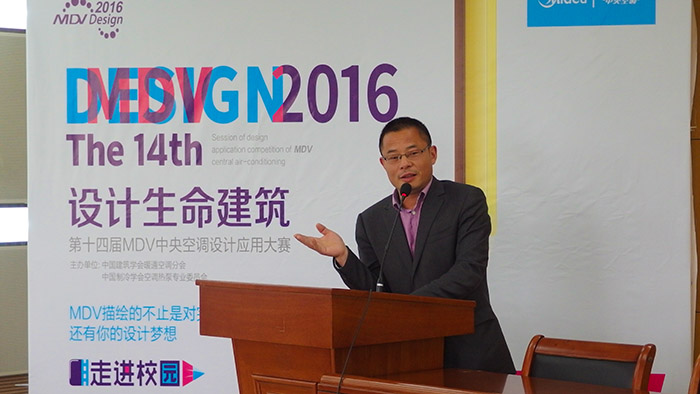 “第十四届美的MDV中央空调设计应用大赛”以设计生命建筑为主题,即“建筑是生命的载体,生命是建筑的灵魂”,寓意设计的最高境界是生命和建筑的有机结合,同时将“绿色、节能、环保、低碳”定义为生命建筑的重要特征,顺应了当今全球“低碳和节能”的发展趋势。本次宣讲活动的目的旨在向我校暖通及相关专业的学生宣传此次大赛事项,积极鼓励同学们将理论与实践相结合、密切关注行业发展方向与趋势、开拓创新,主动地投身参与到此项活动赛事。