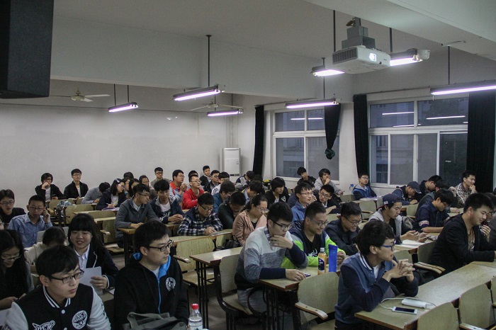 活动中穿插了问答的互动,同学们热情高涨,积极参与其中。活动结束后,仍有不少同学留下来和绿荫工作室的同学交流,绿荫工作室也认真为同学们解答问题,并交流一些程序设计编写的技巧。