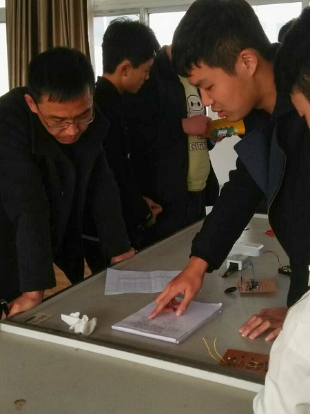 下午2:00,所有参赛选手来到学办焊接实验室,大家均带来了自己在规定时间内设计制作的作品。比赛开始,电子系副主任李义丰老师开始一一验收同学们的电子作品。参赛选手们都认真细致地向老师介绍了自己的想法,详细讲解了相关原理和功能实现,并展示了作品功能。其中,来自电子1501班的史云鹤同学带来的“模拟闪光玩具枪”让大家耳目一新,纷纷赞叹其富有新意的设计。此外,同为电子1501班的丁宁同学带来的“雨水报警器”以其实用性也获得了大家的掌声。此次大赛参赛作品多种多样,防盗装置、水位检测器等作品一一呈现。最终,经李义丰老师和科协成员的评审,史云鹤的模拟闪光玩具枪荣获一等奖,丁宁、吴淼等同学分别荣获二、三等奖。尽管这些作品不是最完美的,但是同学们都将课堂知识运用到了实践中,迈出了学术实践的第一步。同学们均表示此次比赛既开阔了眼界,也提高了自己的能力。