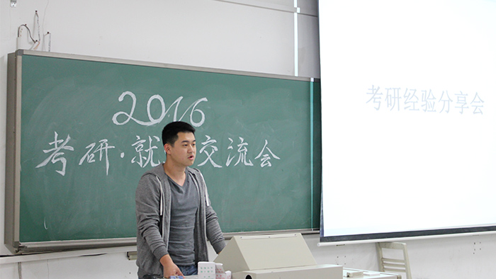 在这一年春暖花开之时,大三的同学们却面临着考研还是就业的抉择,为了给大三同学提供指引,也为大一、大二的同学普及一些考研与就业方面的知识,环境科学与工程学院团委于2016年4月15日晚6点30分在仁智楼201教室共同举办了“考研就业交流会”。